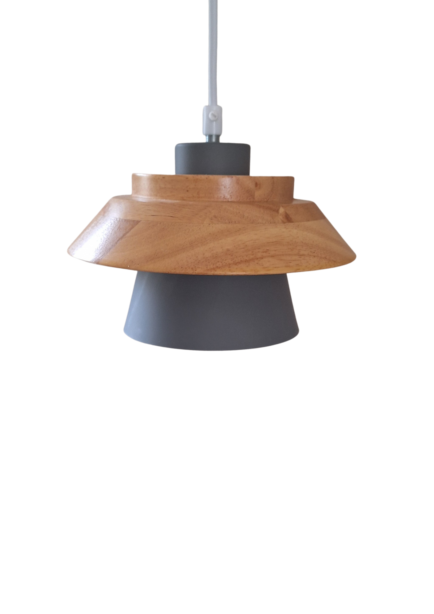 Hanglamp Grijs met hout en witte binnenkant - Scaldare Catania