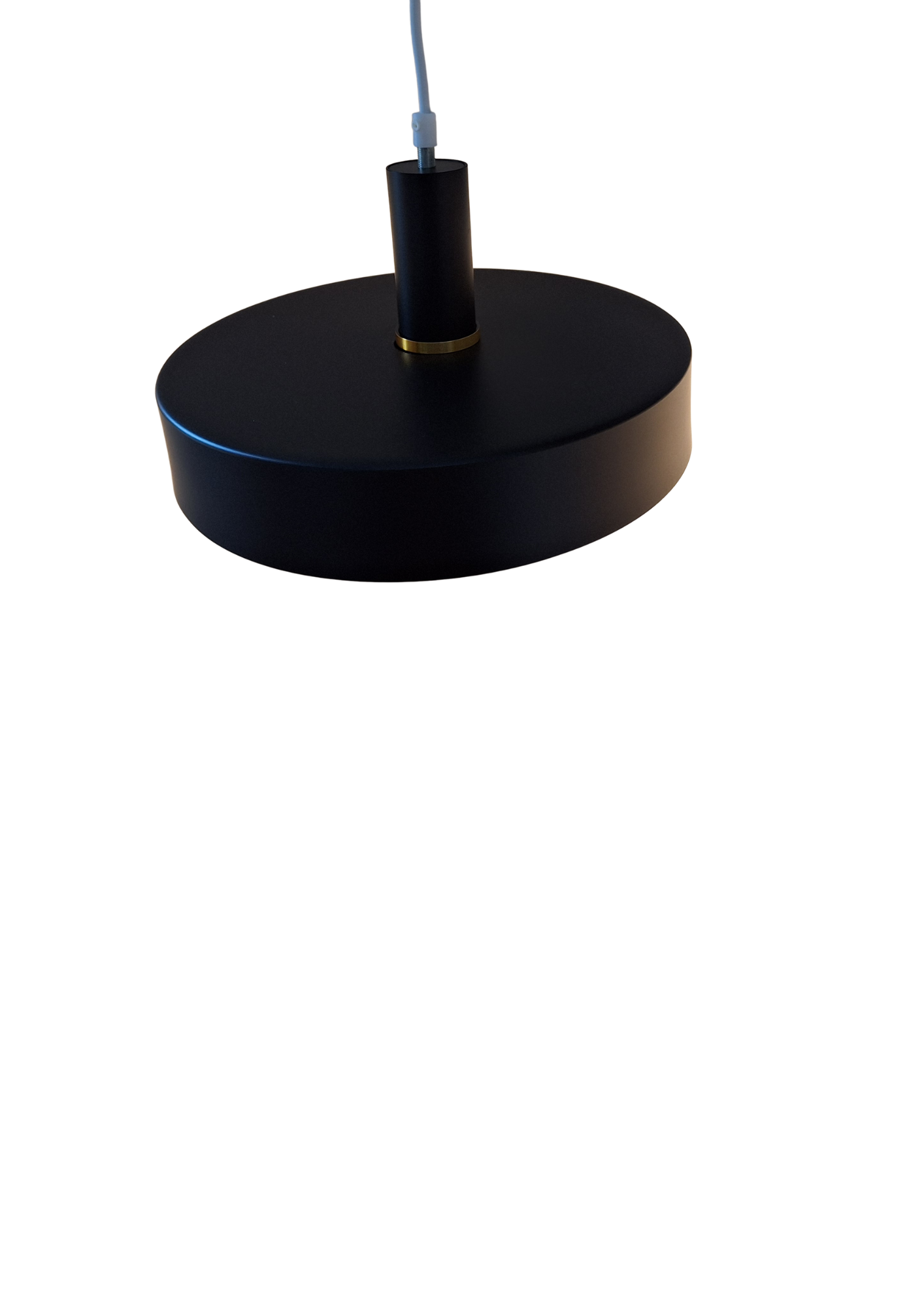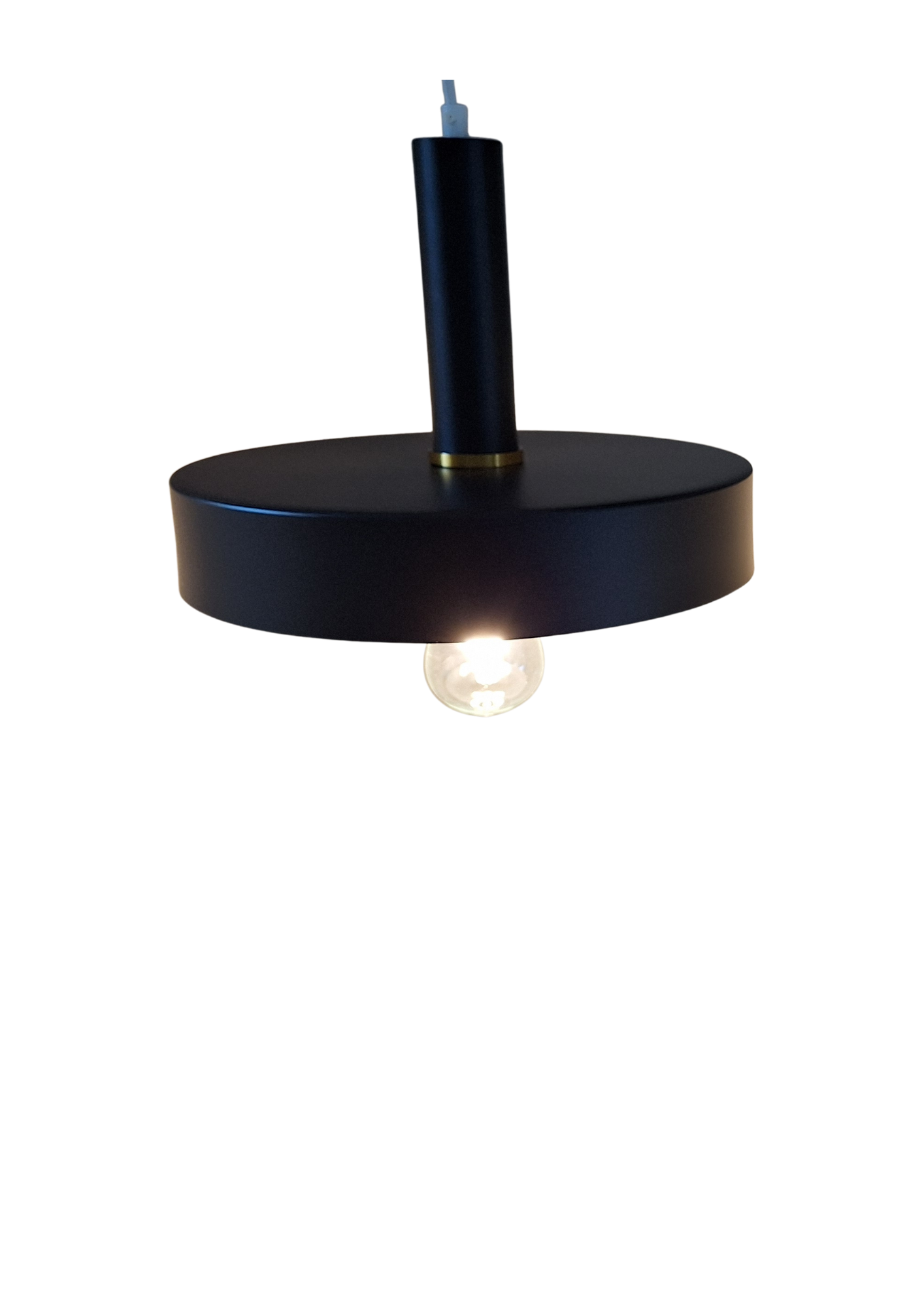 Prachtige, zwarte hanglamp met witte binnenkant met een diameter van 30 en een hoogte van 6 cm. De lamp is gemaakt van ijzer en is heel strak afgewerkt. De lamp heeft een E27 fitting en door de witte binnenkant krijgt uw woning een warme gloed wanneer de lamp brandt.